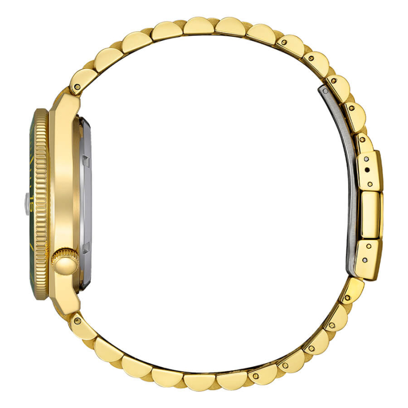Citizen men's watch from the Tsuyosa collection. The watch features a self-winding mechanical movement with a date display and a 40-hour power reserve. The case is made of gold-plated PVD steel, measuring 40 mm in diameter. The bracelet is made of gold-plated PVD steel. Sapphire crystal. The dial is green. Water resistance is 10 bar / 100 meters. Reference: NJ0232-53X