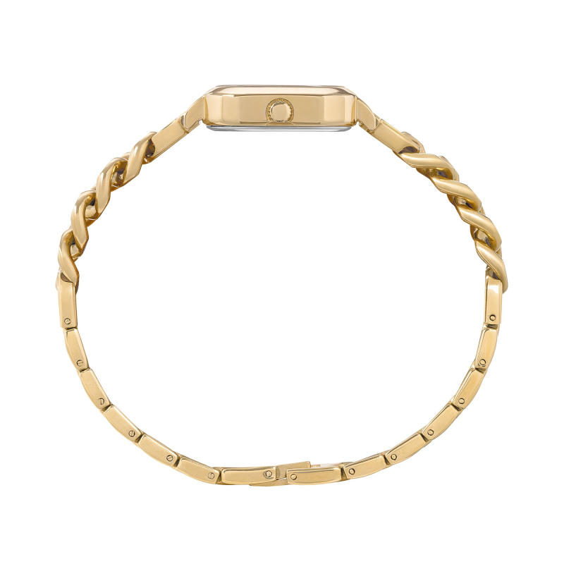 Breil Tribe women's watch from the Élise collection. The watch has a quartz movement. The square case is made of gold PVD steel and measures 25 x 32 mm. The bracelet is made of gold PVD steel. The dial is champagne-colored. Water resistance is 5 ATM / 50 meters. Reference: EW0834