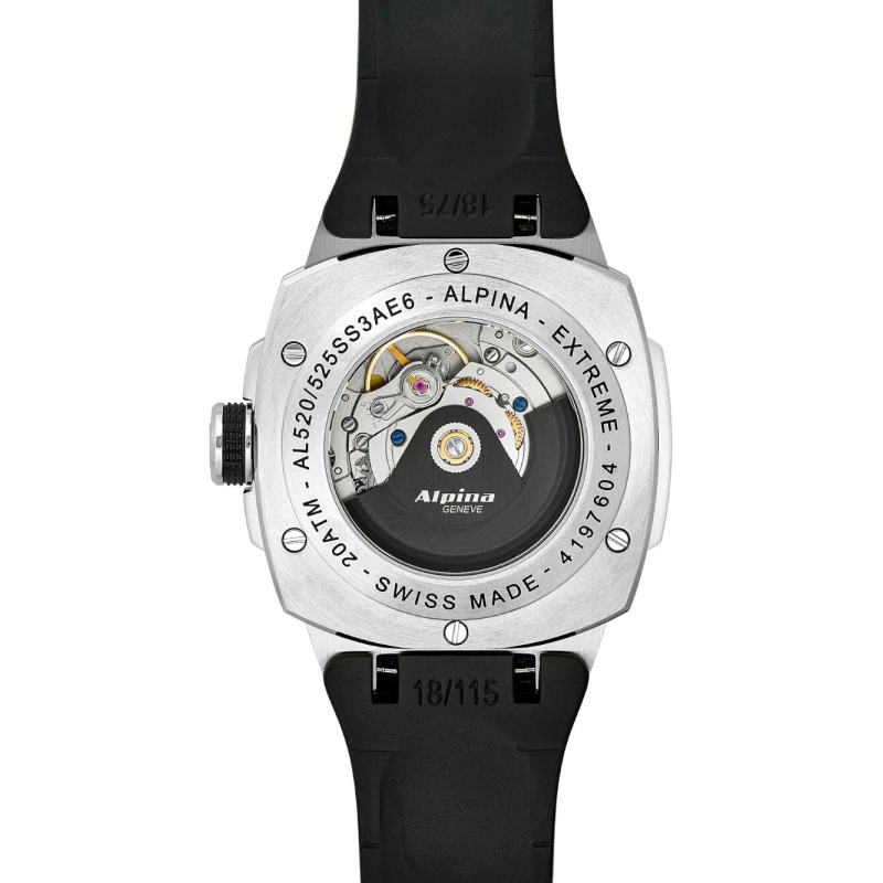 Alpina Alpiner Extreme California AL-525GRG3AE6 : this watch captivates with its gradient green dial , inspired by Alpine forests and enriched by the iconic California display, a refined detail loved by connoisseurs. The neo-vintage look combines with a strong sporty soul, with a steel case, screw-down crown and water resistance up to 200 meters . Inside, the automatic AL-525 caliber with 38 hours of power reserve guarantees precision, reliability and character on every adventure.
