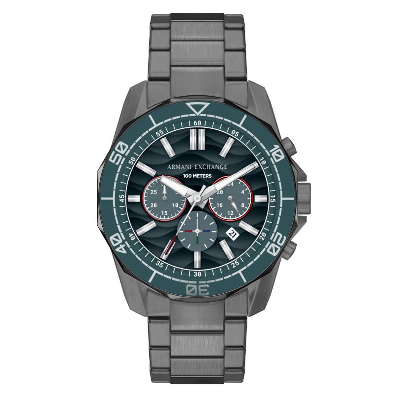 Armani Exchange Spencer AX1972 : Gunmetal IP and a blue dial for a sporty, modern, and confident look. Perfect for work, leisure, and weekends, it adds character and style to any outfit.