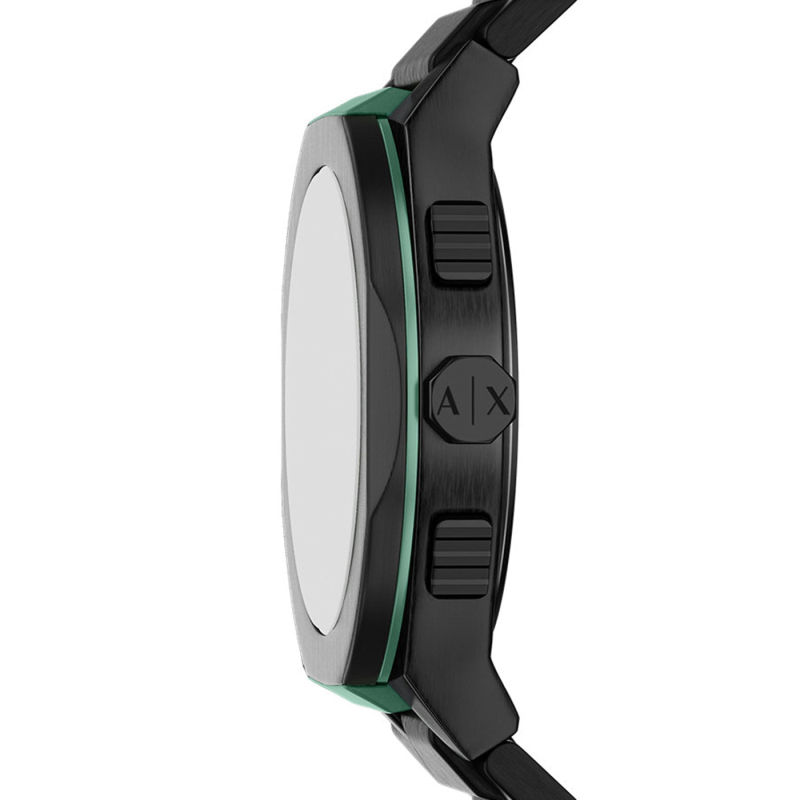 Armani Exchange men's watch from the Sync collection. The watch has a quartz movement with date, chronograph, and 24-hour functions. The case is made of black IP steel, with a diameter of 44 mm. The bracelet is made of black IP steel. The dial is black. Water resistance is 5 bar / 50 meters. Reference: AX4294