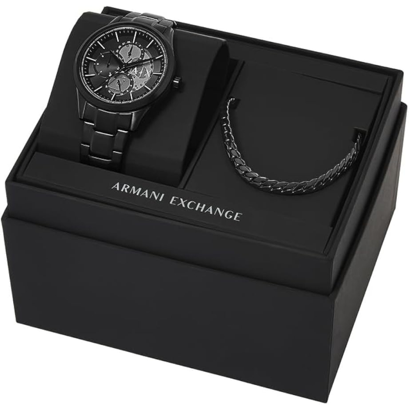 Armani Exchange Dante AX7160SET : a set of all-black watch and necklace, for a modern, bold look brimming with personality. Perfect as a gift or for everyday wear, it adds character and urban style to any outfit.