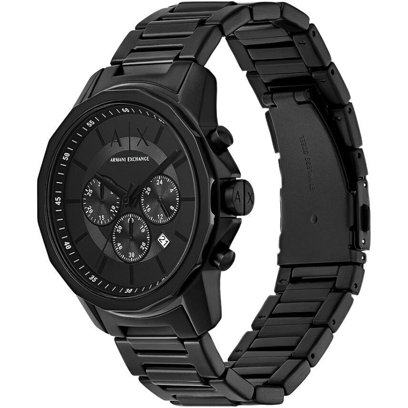 Armani Exchange men's watch and bracelet set from the Banks collection. The watch has a quartz movement with date, chronograph, and 24-hour functions. The case is made of black IP steel, 44 mm in diameter. The bracelet is made of black IP steel. The dial is black. Water resistance is 5 ATM / 50 meters. Reference: AX7163SET
