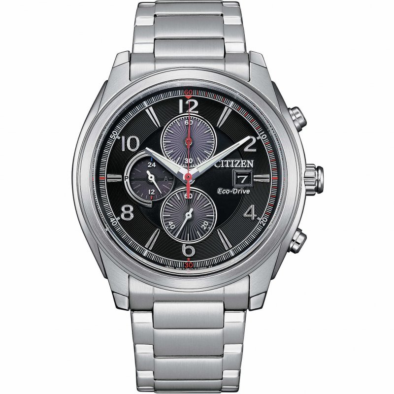Citizen men's watch from the Chrono Sport collection. The movement of the watch is Ecodrive quartz with chronograph and date functions. The case is made of steel. The bracelet is made of steel. Water resistance is 10 atm / 100 meters. Reference: CA0671-82E