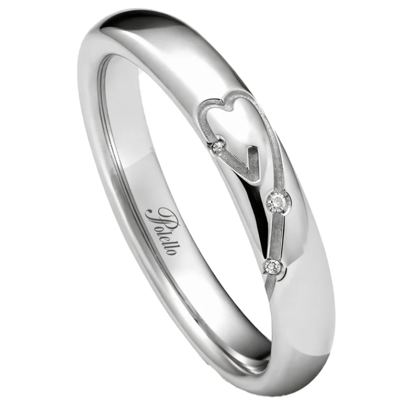 Polello wedding band from the Petalo d'Amore collection. 950 platinum gold wedding band with 0.01 ct natural diamonds, 3.80 mm wide. Reference: 3411DPT
