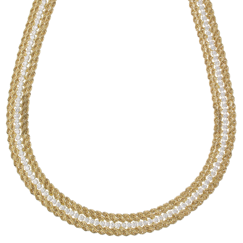 Women's bracelet in 750 (18KT) yellow gold. Carpet-style bracelet with a central tennis bracelet. The bracelet is 19 cm long and 1 cm wide. The bracelet weighs 11.00 grams. Reference: GL102228