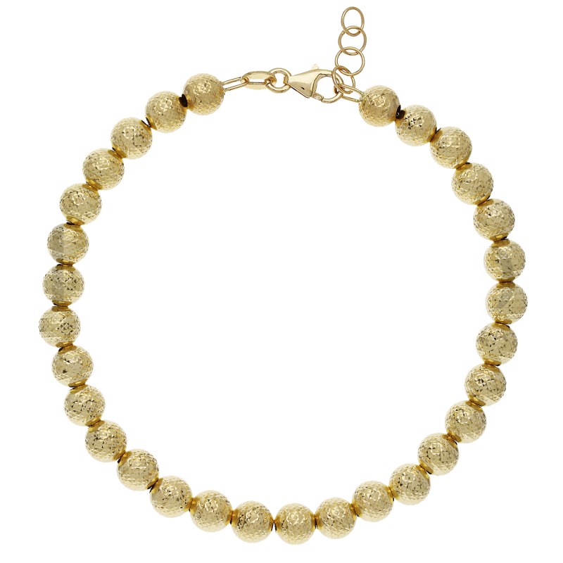 Women's bracelet in 750 (18 kt) yellow gold. Chain bracelet, 6 mm diameter spheres with diamond-cut workmanship. Adjustable length from 18 to 20 cm , lobster clasp closure. The bracelet weighs 4.40 grams. Reference: GL102252
