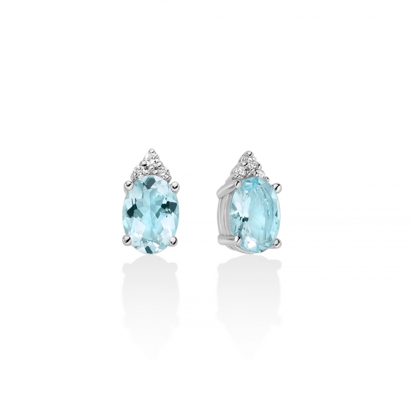 Miluna women's earrings from the Le Gemme collection. Earrings in 750/00 (18 kt) white gold with 2 natural oval-cut aquamarines 7x5 mm, 1.34 carats in total; 6 natural diamonds totaling 0.048 carats, color G. Reference: ERD2845