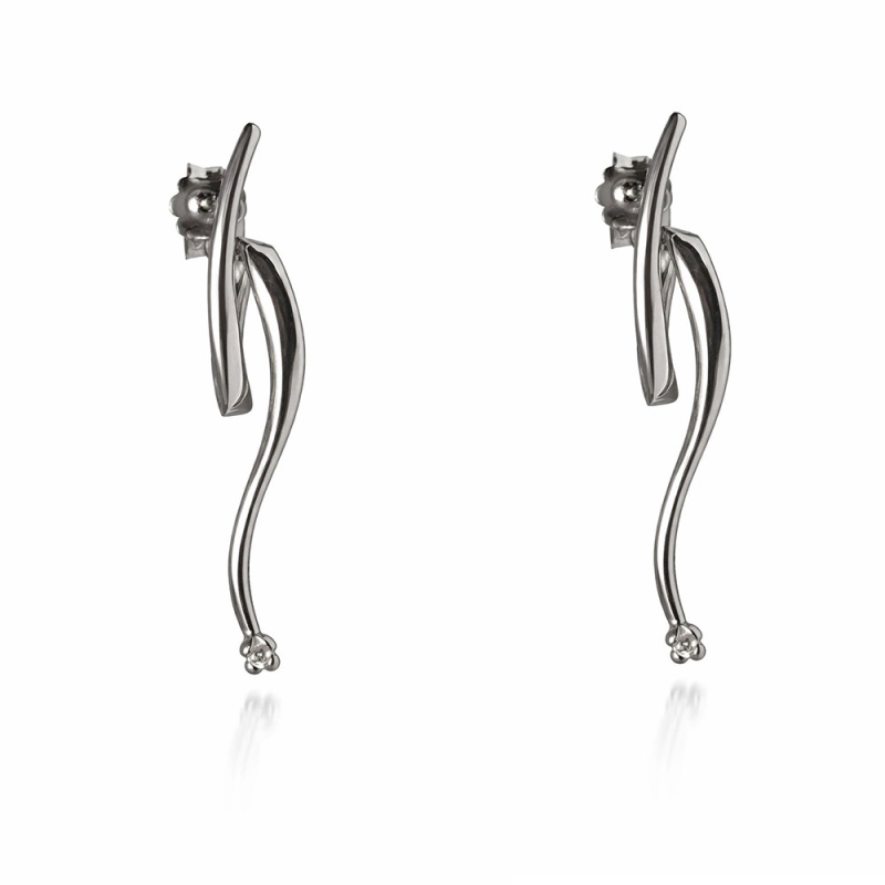 Women's earrings in 750 (18 kt) white gold. Drop earrings with two natural diamonds, total carat weight 0.02 ct, G color, VS clarity. Length 3.30 cm, butterfly screw closure. Reference: GL102402