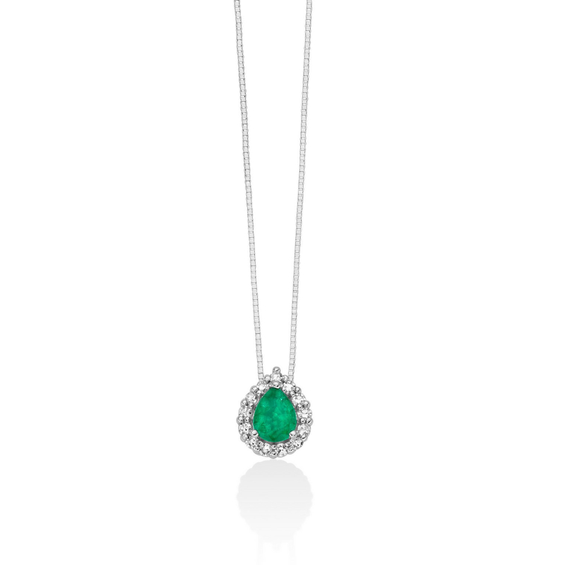 The natural and precious pear-cut ruby is the protagonist of this 750 white gold necklace. The gem is surrounded by luminous natural diamonds to enhance its color.