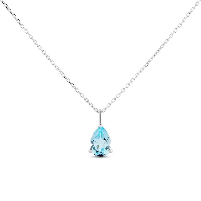 Stroili women's necklace from the Amélie collection. 9kt (375) white gold. Drop-shaped pendant with a blue topaz stone. Adjustable length from 40 to 42 cm. Lobster clasp closure. Reference: 1413217