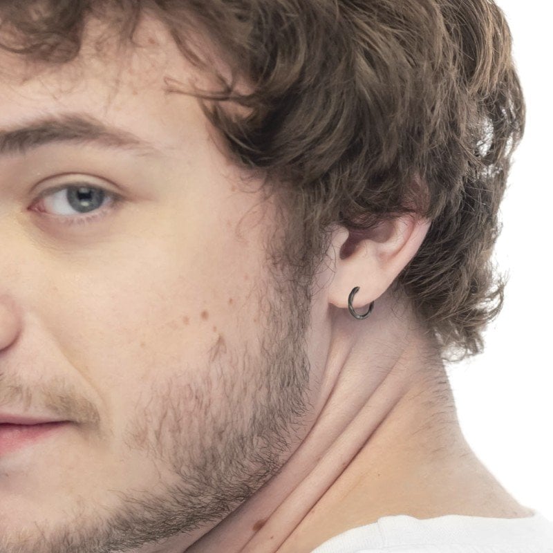 Mono orecchino a cerchio ritorto in acciaio, diametro 1,5cm, chiusura a pressione. Referenza: 33OR0115N