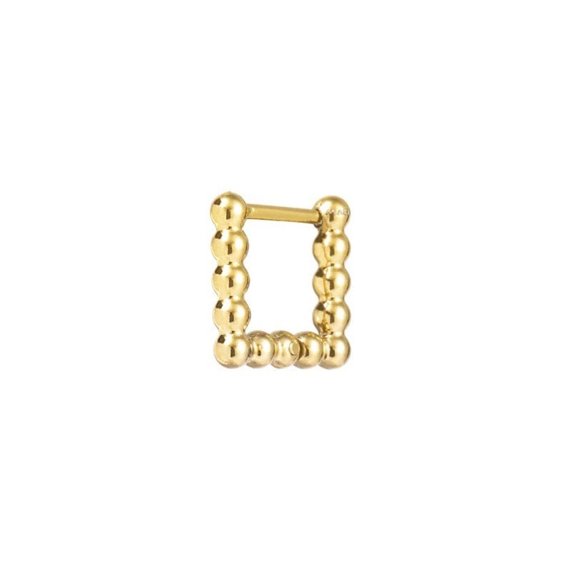 Mono orecchino quadrato in acciaio con trama a sfere, misura 1,1x1,1 cm, chiusura a pressione. Referenza: 33OR0128