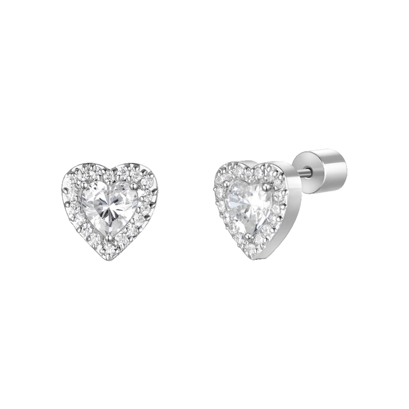 Orecchini donna in acciaio con cuori con zirconi verdi e bianchi. Misura cuore: 8 x 8 mm. Referenza: OK1587