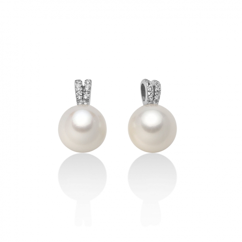 Orecchini da donna Miluna della collezione Le Perle. Orecchini in oro bianco 750 (18 KT) con perle coltivate 7.5/8 mm e 12 diamanti naturali 0.0048 carati totali. Referenza: PER2312