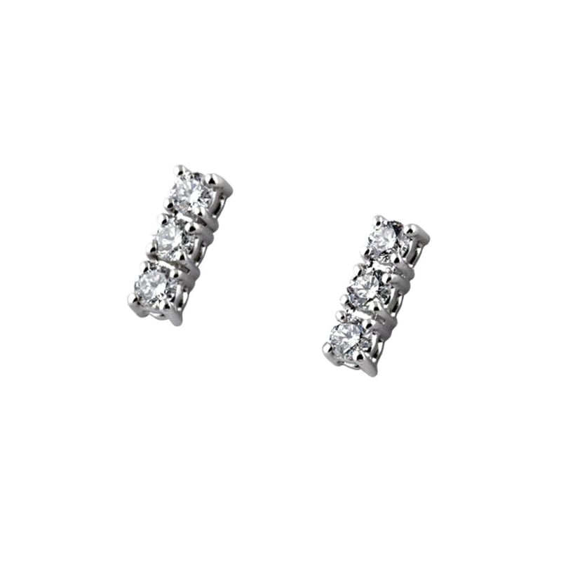 Orecchini da donna Promesse Gioielli in oro bianco 750 (18 KT). Orecchini modello trilogy con diamanti naturali, colore G/H, purezza VS1. Chiusura con vite farfallina. Referenza: OTRY