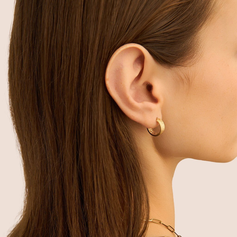 Questi orecchini a cerchio in oro giallo incarnano uno stile classico e raffinato. Perfetti per chi ama la semplicità con un tocco di luce, si adattano a ogni occasione, valorizzando il tuo look con discreta eleganza.