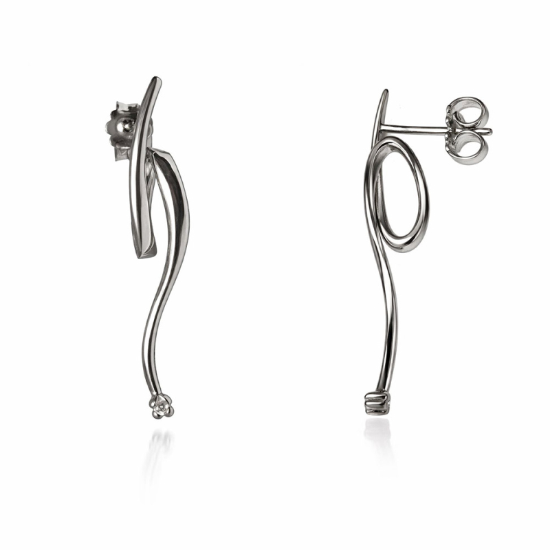 Orecchini da donna in oro bianco 750 (18 KT). Orecchini pendenti con 2 diamanti naturali, caratura totale 0,02 ct, colore G, purezza VS. Lunghezza 3,30 cm, chiusura con vite farfallina. Referenza: GL102402
