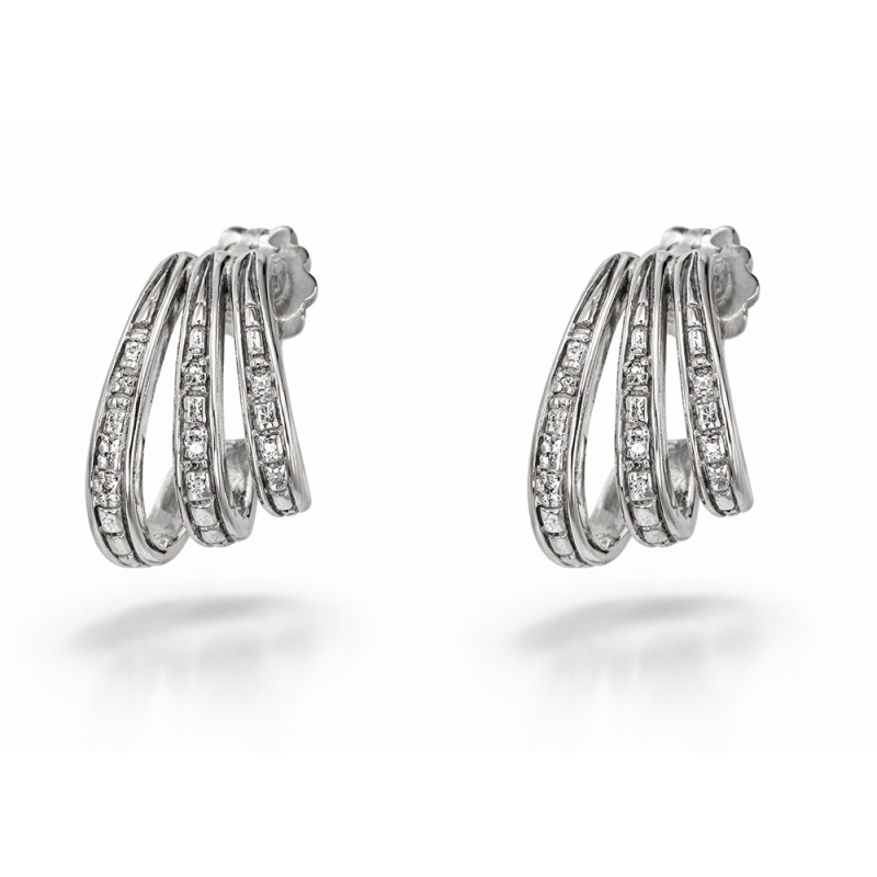 Orecchini da donna in oro bianco 750 (18 KT). Orecchini con 12 diamanti naturali, caratura totale 0,06 ct, colore G, purezza VS. Diametro interno massimo 0,80 cm, spessore massimo 0,80 cm, chiusura con vite farfallina. Referenza: GL102407
