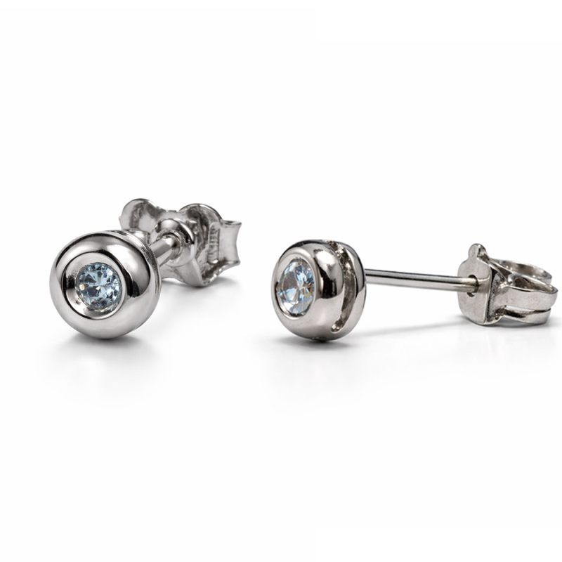 Orecchini da donna in oro bianco 750 (18 KT). Orecchini con 2 diamanti naturali azzurri, caratura totale 0,04 ct. Diametro 0,50 cm, chiusura con vite farfallina. Referenza: GL102409