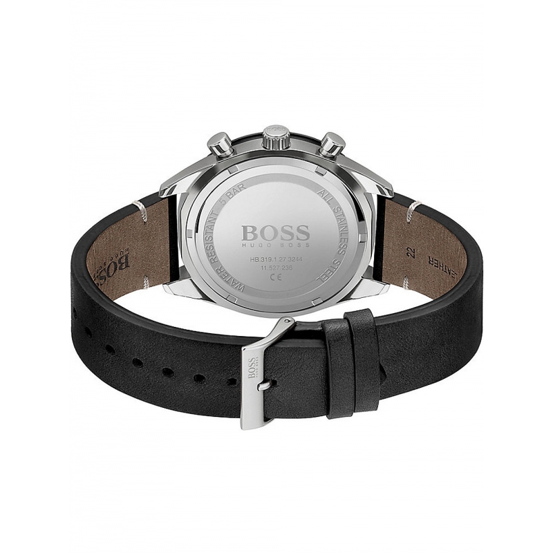 Orologio da uomo Hugo Boss della collezione Santiago. Il movimento dell'orologio è al quarzo con funzioni datario e cronografo. La cassa dell'orologio è realizzata in acciaio, diametro 44 mm. Il cinturino dell'orologio è realizzato in pelle di colore nero. Il quadrante è di colore nero. La resistenza all'acqua è di 5 ATM / 50 metri. Referenza: 1513864