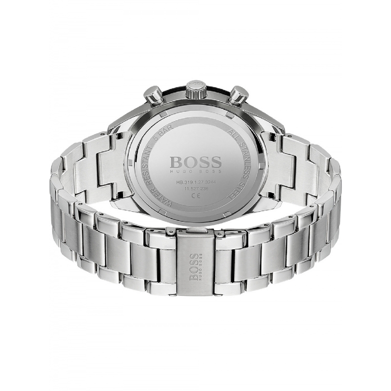 Orologio da uomo Hugo Boss della collezione Santiago. Il movimento dell'orologio è al quarzo con funzioni datario e cronografo. La cassa dell'orologio è realizzata in acciaio, diametro 44 mm. Il bracciale dell'orologio è realizzato in acciaio. Il quadrante è di colore nero. La resistenza all'acqua è di 5 ATM / 50 metri. Referenza: 1513862