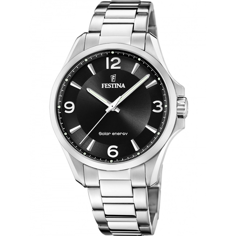 Orologio da uomo Festina della collezione Solar Energy. Il movimento dell'orologio è al quarzo a carica solare. La cassa è realizzata in acciaio, diametro 42 mm. Il bracciale è realizzato in acciaio. Il quadrante è di colore nero. La resistenza all'acqua è di 5 atm / 50 metri. Referenza: F20656/4