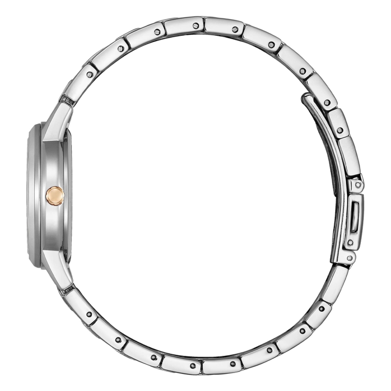 Orologio Citizen da donna della collezione OF Lady. Il movimento dell'orologio è al quarzo Ecodrive con funzioni datario. La cassa dell'orologio è in acciaio e PVD oro, diametro 29 mm. Il bracciale dell'orologio è in acciaio e PVD oro. Il quadrante è di colore madreperla. La resistenza all'acqua è di 5 bar / 50 metri. Referenza: FE1244-72A