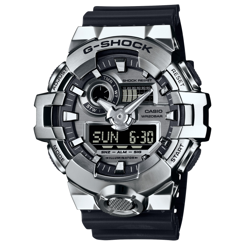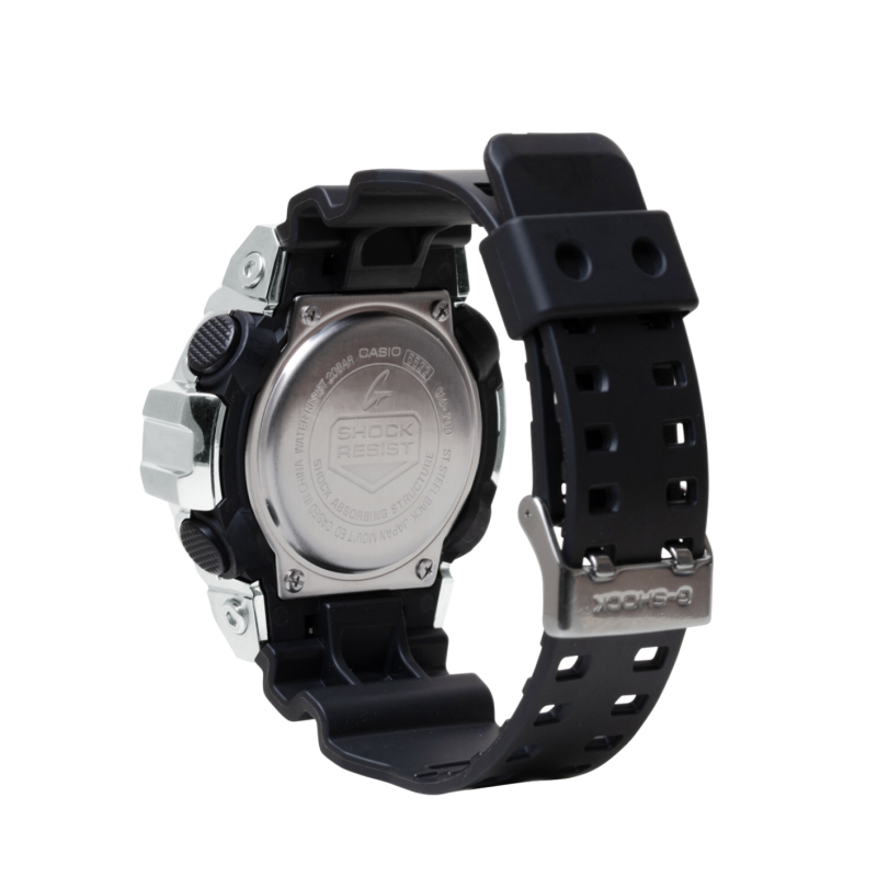 Orologio da uomo Casio G-Shock. Il movimento dell'orologio è al quarzo. La cassa dell'orologio è in resina a base biologica ed acciaio, diametro 53 mm. Il cinturino dell'orologio è in resina di colore nero. Il quadrante è di colore argento e nero digitale. La resistenza all'acqua è di 20 bar / 200 metri. Referenza: GM-700-1AER