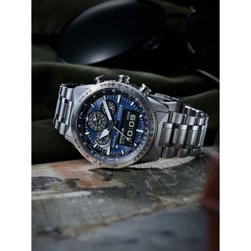 Orologio da uomo Citizen della collezione Promaster. Il movimento dell'orologio è al quarzo Ecodrive (carica solare). La cassa è in acciaio, diametro 43 mm. Il bracciale è in acciaio. Il vetro è zaffiro. Il quadrante è di colore blu con display digitale. La resistenza all'acqua è di 20 bar / 200 metri. Referenza: JV2000-51L