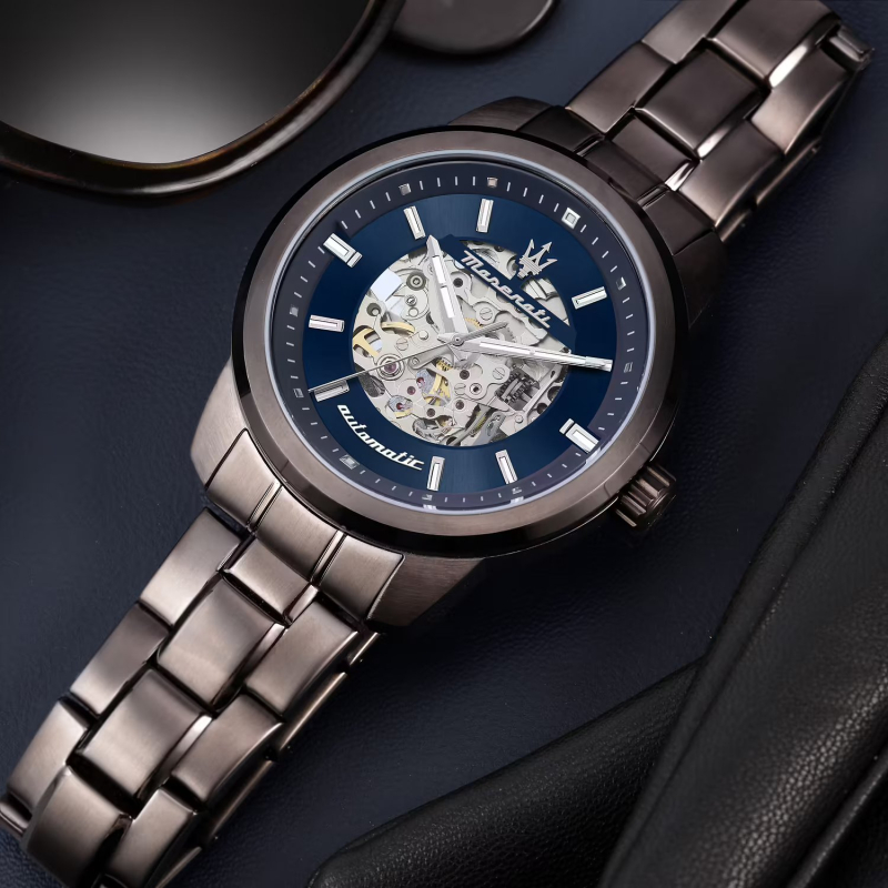 Orologio da uomo Maserati della collezione Successo. Il movimento dell'orologio è meccanico a carica automatica. La cassa è in acciaio IP nero, diametro 44 mm. Il bracciale è in acciaio IP nero. Il quadrante è di colore blu. La resistenza all'acqua è di 5 atm / 50 metri. Referenza: R8823121002