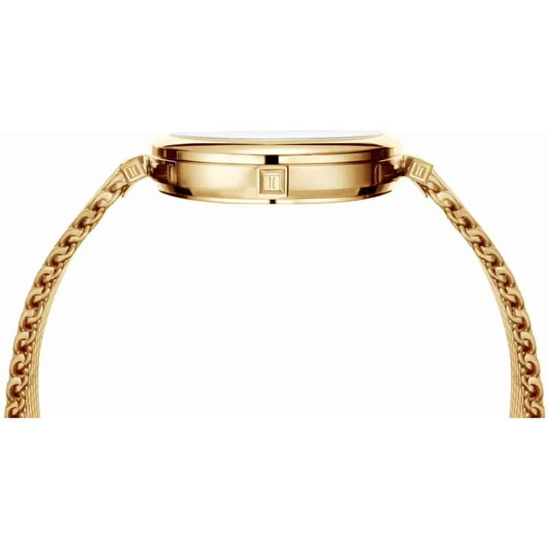 Orologio da donna Alviero Martini 1a Classe della collezione Colonia. Il movimento dell'orologio è al quarzo. La cassa è in acciaio PVD oro, diametro 28 mm. Il bracciale è in acciaio PVD oro. Il quadrante è di colore madreperla. La resistenza all'acqua è di 3 ATM / 30 metri. Referenza: AC00580050106B01