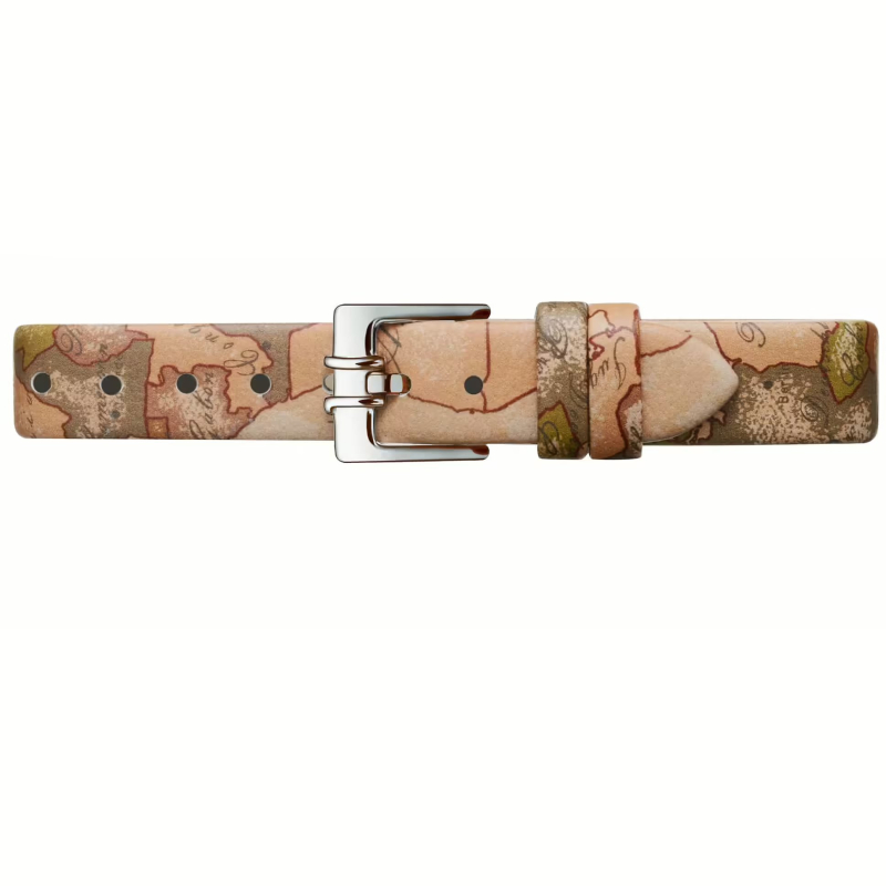 Orologio da donna Alviero Martini 1a Classe della collezione Time Square. Il movimento dell'orologio è al quarzo. La cassa è in acciaio di forma quadrata, dimensioni 24 x 24 mm. Il cinturino è in in pelle con stampa Geo Map. Il quadrante è di colore argento. La resistenza all'acqua è di 3 ATM / 30 metri. Referenza: AC00420010101S01