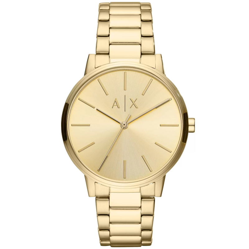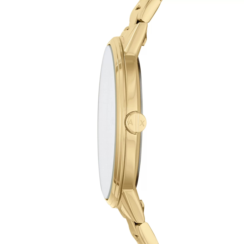 Orologio da uomo Armani Exchange della collezione Cayde. Il movimento dell'orologio è al quarzo. La cassa è in acciaio PVD oro, diametro 42 mm. Il bracciale è in acciaio PVD oro. Il quadrante è di colore sunray. La resistenza all'acqua è di 5 ATM / 50 metri. Referenza: AX2707