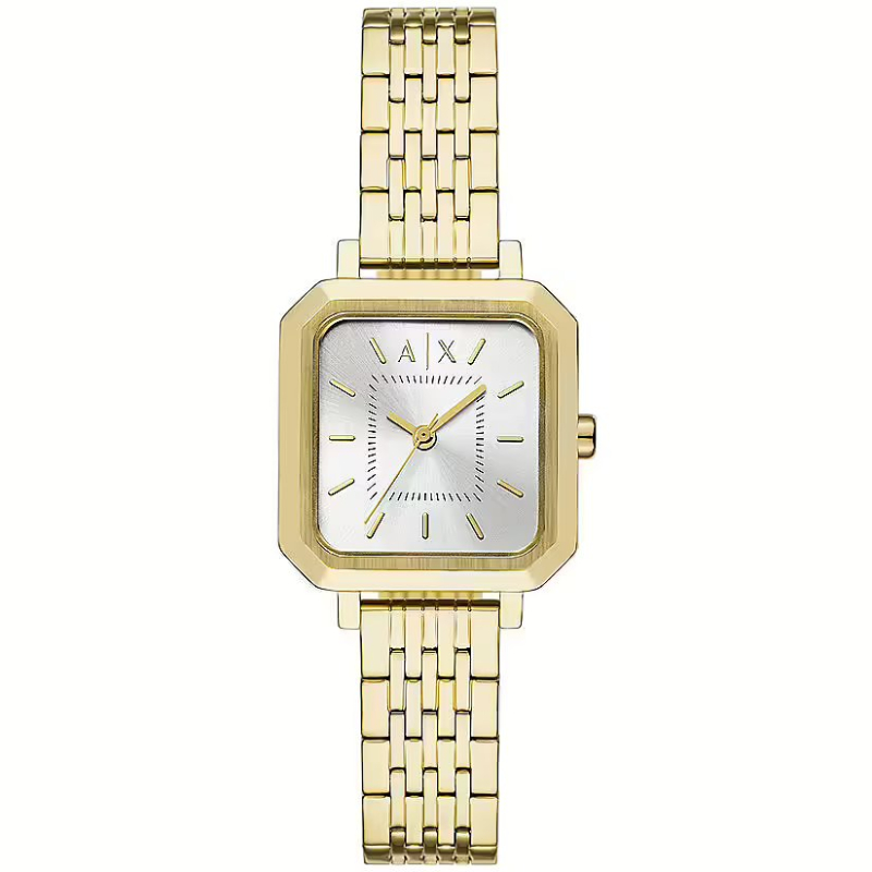 La cassa in acciaio inossidabile dorato da 27 mm con finitura lucida si abbina al bracciale in acciaio dorato con chiusura deployante, mentre il quadrante argento con indici a bastone dona una estetica luminosa e armoniosa, ideale sia con outfit casual che formali.