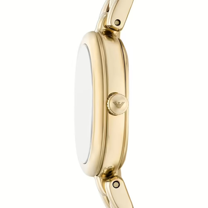 Prezioso e luminoso, questo orologio Emporio Armani avvolge il polso con caldi riflessi dorati e madreperla, per uno stile femminile sofisticato e senza tempo.