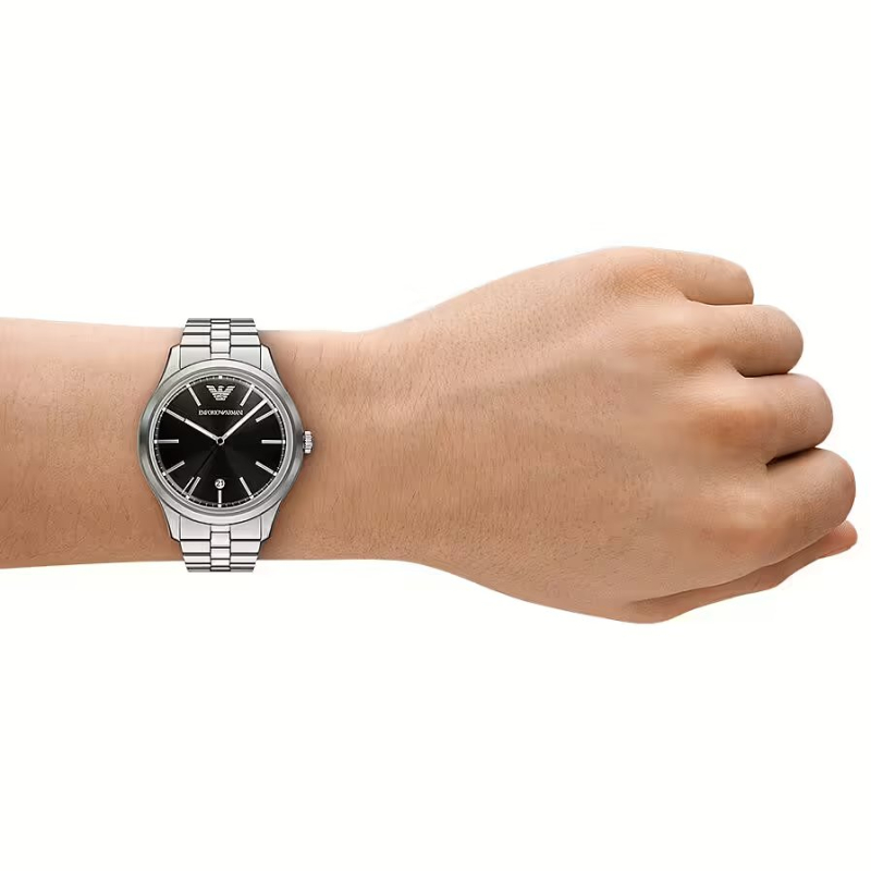 Deciso e raffinato, questo orologio Emporio Armani conquista con il suo quadrante nero profondo e linee pulite, per uno stile maschile elegante e senza tempo.