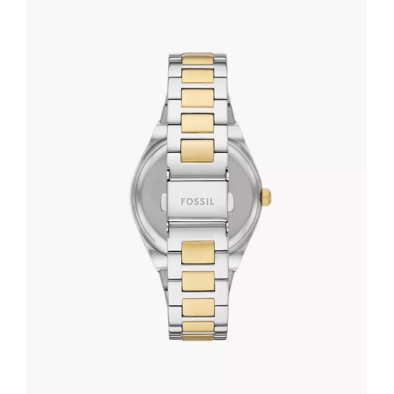 Raffinato e luminoso, questo orologio Fossil Scarlette unisce acciaio e riflessi dorati in uno stile elegante, pensato per valorizzare ogni momento con classe.