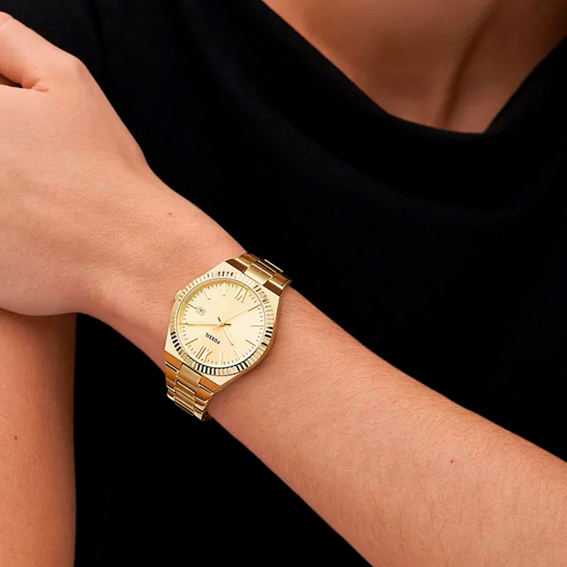 Luminoso e sofisticato, questo orologio Fossil Scarlette avvolge il polso con riflessi dorati e uno stile elegante, perfetto per dare luce a ogni giorno.