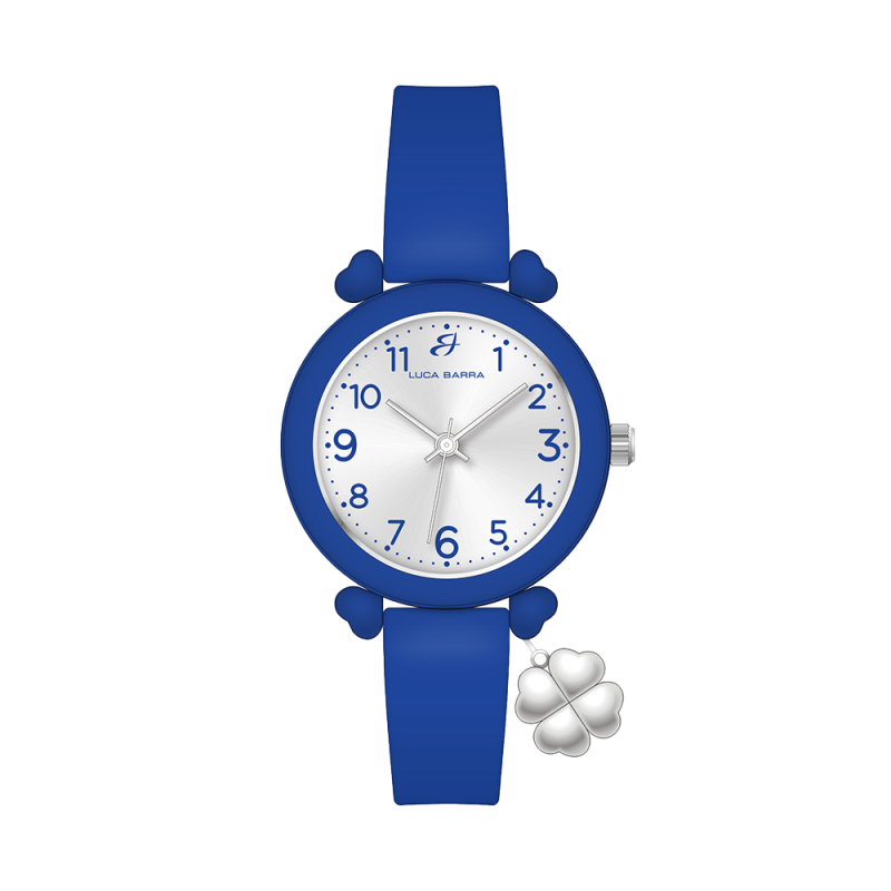 Orologio donna Luca Barra. Orologio con charm quadrifoglio. Diametro cassa: 31,5 mm. Movimento al quarzo. Cinturino in silicone blu. Questo orologio da donna grigio con charm quadrifoglio esprime un’eleganza discreta e sofisticata, perfetto per un look minimal e raffinato. Referenza: BW400