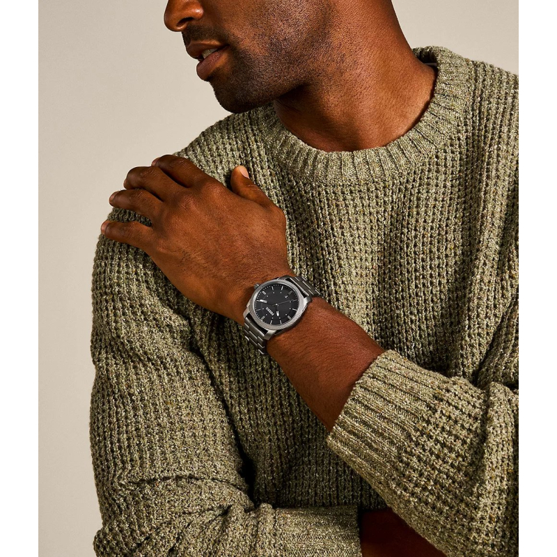 Fossil Machine ES5393: acciaio IP grigio e quadrante nero per un look maschile e deciso, perfetto dal lavoro al tempo libero. Solido e pratico ogni giorno, completa con carattere outfit casual e più formali, fino alle serate fuori.