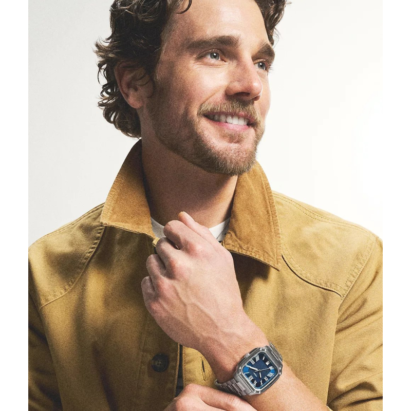 Orologio da uomo Fossil della collezione Crosby. Il movimento dell'orologio è al quarzo con funzione datario. La cassa di forma rettangolare è in acciaio, diametro 42 mm. Il bracciale è in acciaio. Il quadrante è di colore blu. La resistenza all'acqua è di 5 atm / 50 metri. Referenza: FS6121