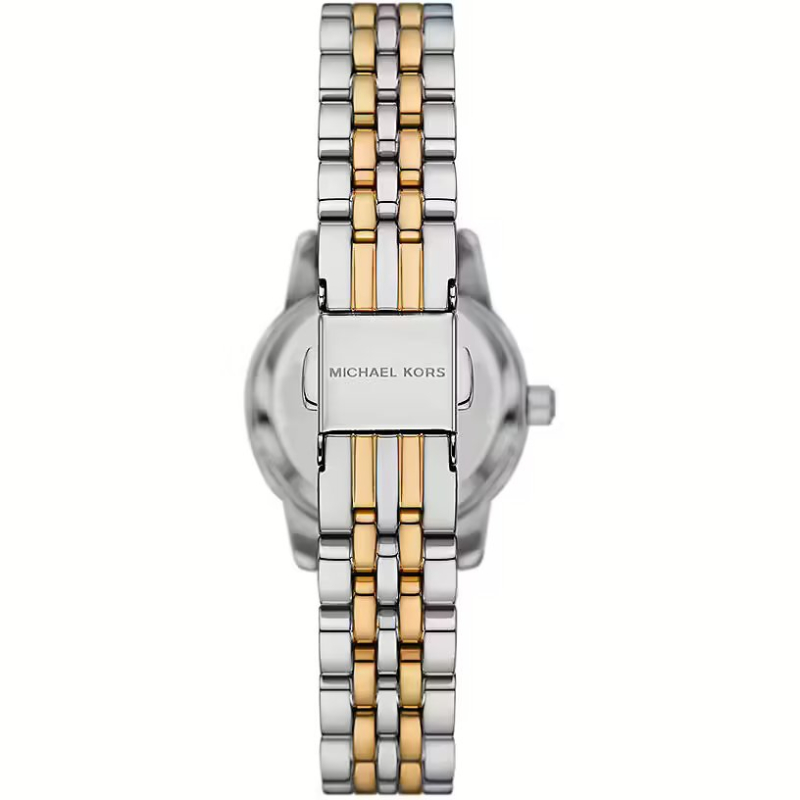 Set Orologio e Bracciali da donna Michael Kors della collezione Petite Lexington. Il movimento dell'orologio è al quarzo. La cassa è in acciaio e PVD oro, diametro 26 mm. Il bracciale è in acciaio e PVD oro. Il quadrante è di colore sunray. La resistenza all'acqua è di 5 atm / 50 metri. Referenza: MK4815SET