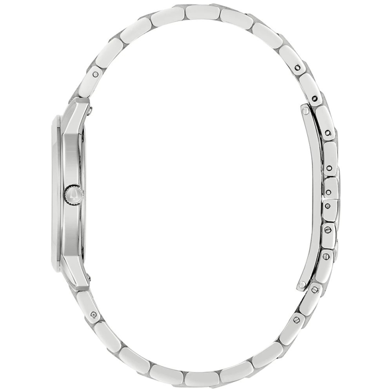 Orologio Bulova da donna della collezione Sutton. Il movimento dell'orologio è al quarzo con funzione datario. La cassa è in acciaio, diametro 31 mm. Il bracciale è in acciaio. Il quadrante è di colore bianco. La resistenza all'acqua è di 3 ATM / 30 metri. Referenza : 96B474