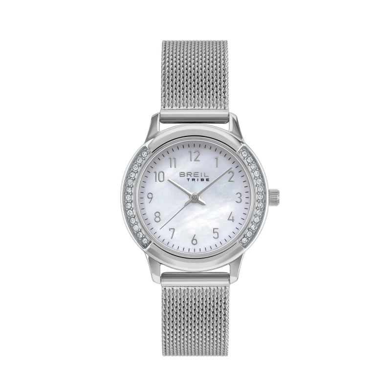Orologio da donna Breil Tribe della collezione Eye to Eye. Il movimento dell'orologio è al quarzo. La cassa è in acciaio, diametro 30 mm. Il bracciale è in acciaio. Il quadrante è di colore madreperla. La resistenza all'acqua è di 5 atm / 50 metri. Referenza: EW0805