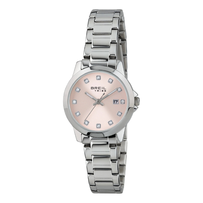 Orologio da donna Breil Tribe della collezione Classic Elegance. Il movimento dell'orologio è al quarzo con funzione datario. La cassa è in acciaio, diametro 28 mm. Il bracciale è in acciaio. Il quadrante è di colore rosa. La resistenza all'acqua è di 5 atm / 50 metri. Referenza: EW0408