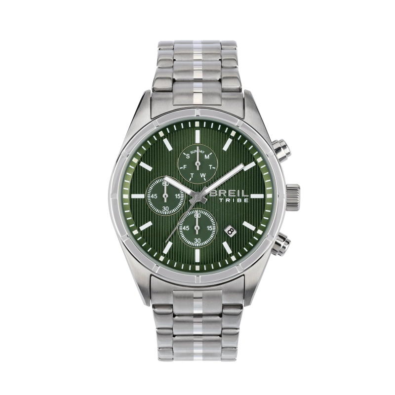 Orologio da uomo Breil Tribe della collezione Captain. Il movimento dell'orologio è al quarzo con funzioni datario, cronografo e indicazione del giorno della settimana. La cassa è in acciaio, diametro 42 mm. Il bracciale è in acciaio. Il quadrante è di colore nero. La resistenza all'acqua è di 10 atm / 100 metri. Referenza: EW0694