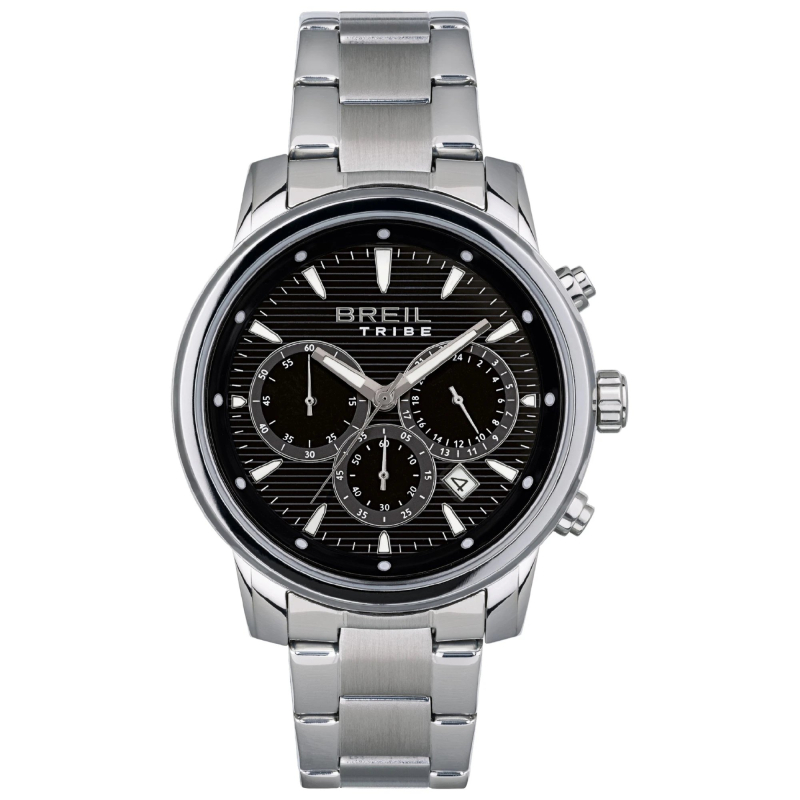 Orologio da uomo Breil Tribe della collezione Caliber. Il movimento dell'orologio è al quarzo con funzioni datario, cronografo e indicazione delle 24h giornaliere. La cassa è in acciaio, diametro 43 mm. Il bracciale è in acciaio. Il quadrante è di colore nero. La resistenza all'acqua è di 5 atm / 50 metri. Referenza: EW0510