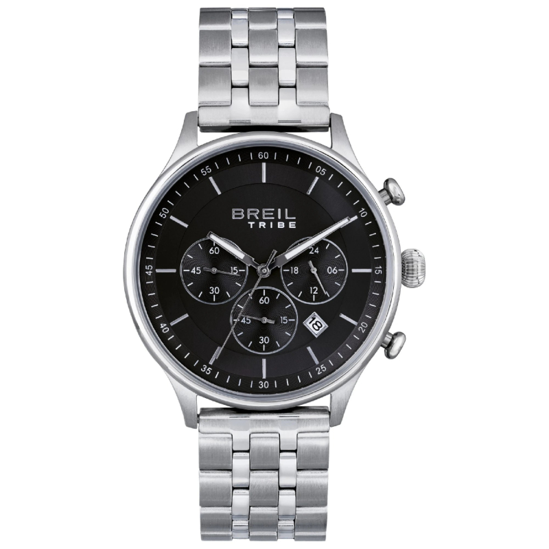 Orologio da uomo Breil Tribe della collezione Classy. Il movimento dell'orologio è al quarzo con funzioni datario, cronografo e indicazione delle 24h giornaliere. La cassa è in acciaio, diametro 42 mm. Il bracciale è in acciaio. Il quadrante è di colore grigio. La resistenza all'acqua è di 5 atm / 50 metri. Referenza: EW0643