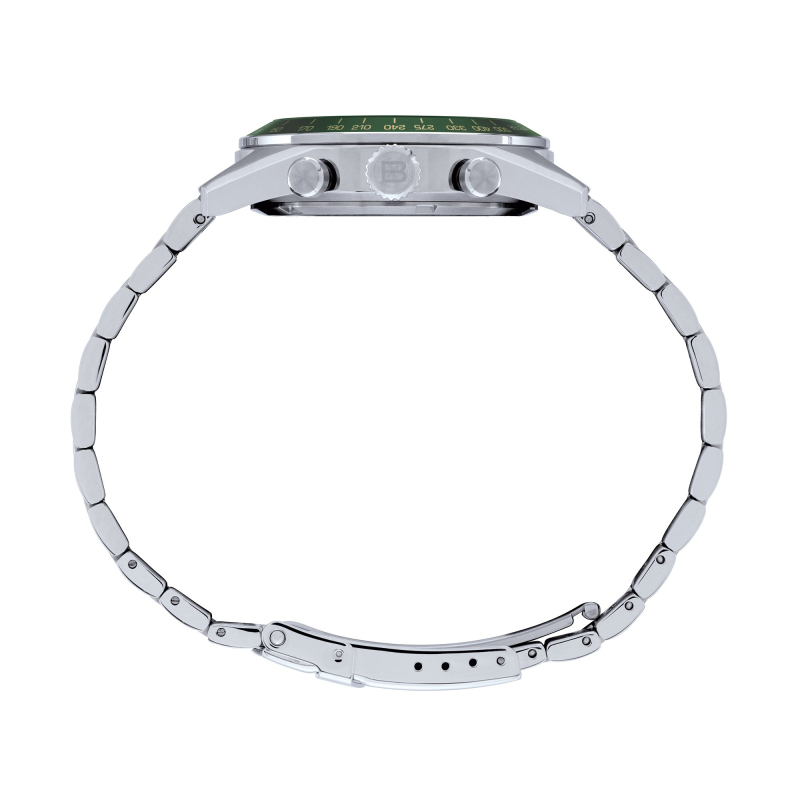 Orologio da uomo Breil della collezione Extreme Noir. Il movimento dell'orologio è al quarzo con funzioni datario, cronografo e indicazione delle 24h giornaliere. La cassa è in acciaio, diametro 41 mm. Il bracciale è in acciaio. Il quadrante è di colore verde. La resistenza all'acqua è di 10 atm / 100 metri. Referenza: TW2186